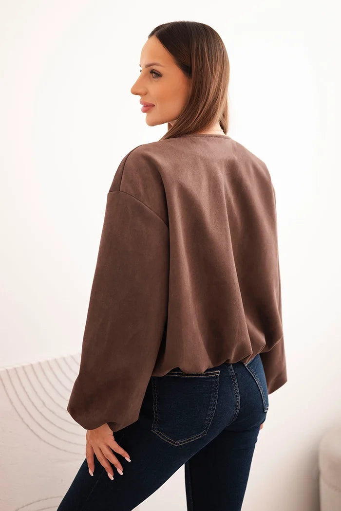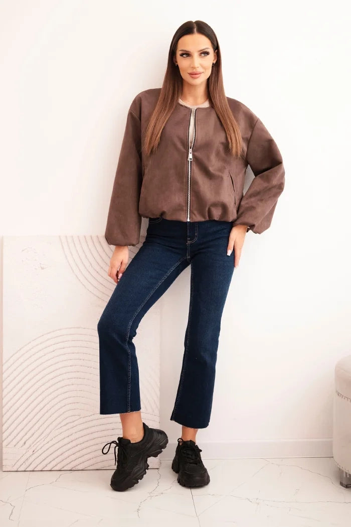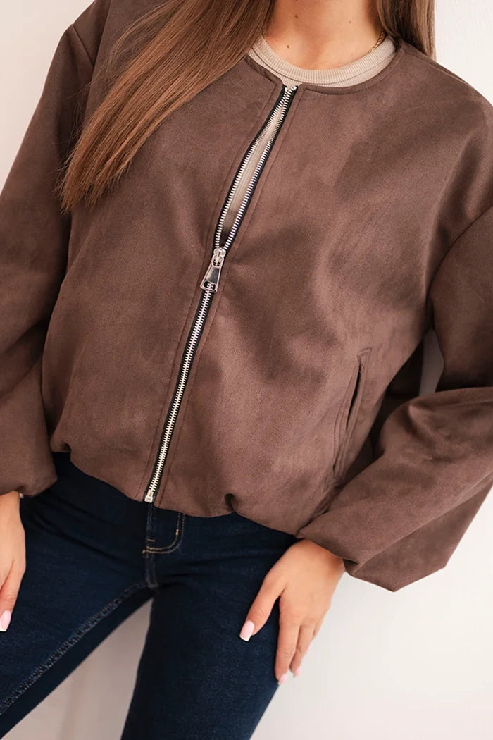 Dámska bunda so zipsom a bufkovými rukávmi hnedá univerzálne