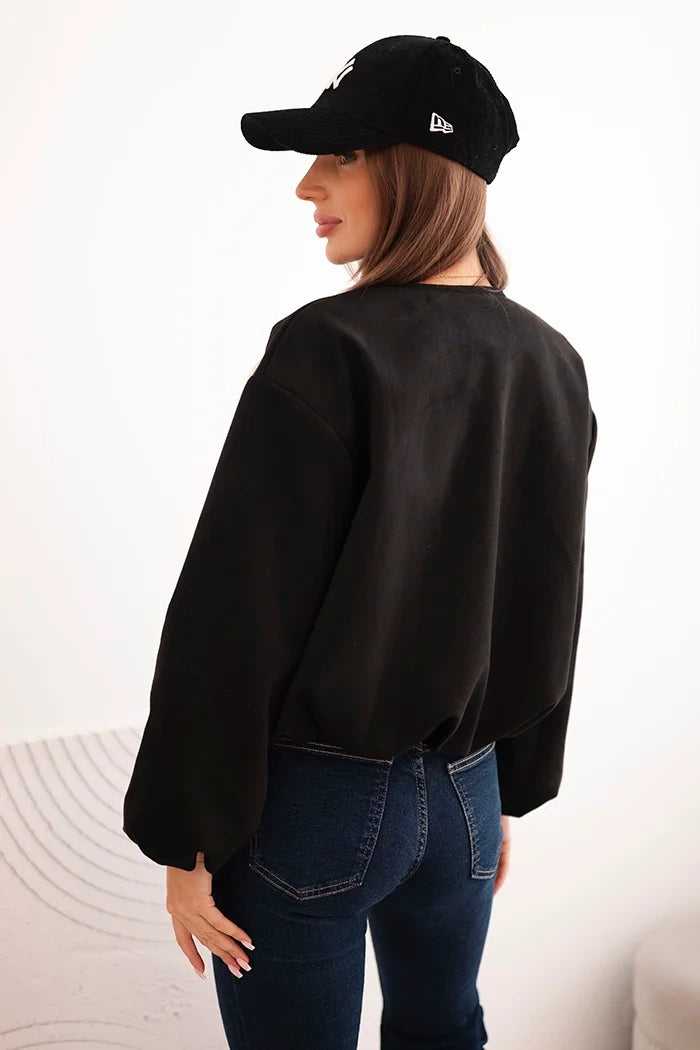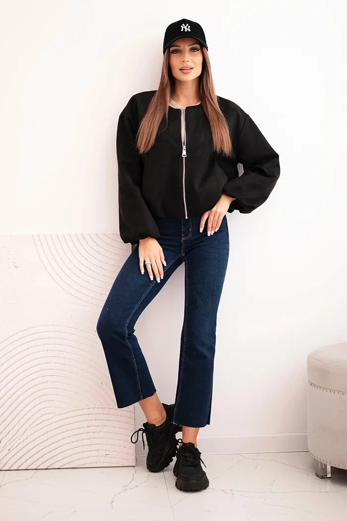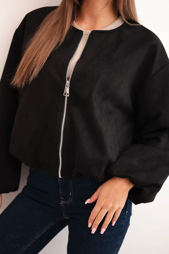Dámska bunda so zipsom a bufovanými rukávmi čierna univerzálne