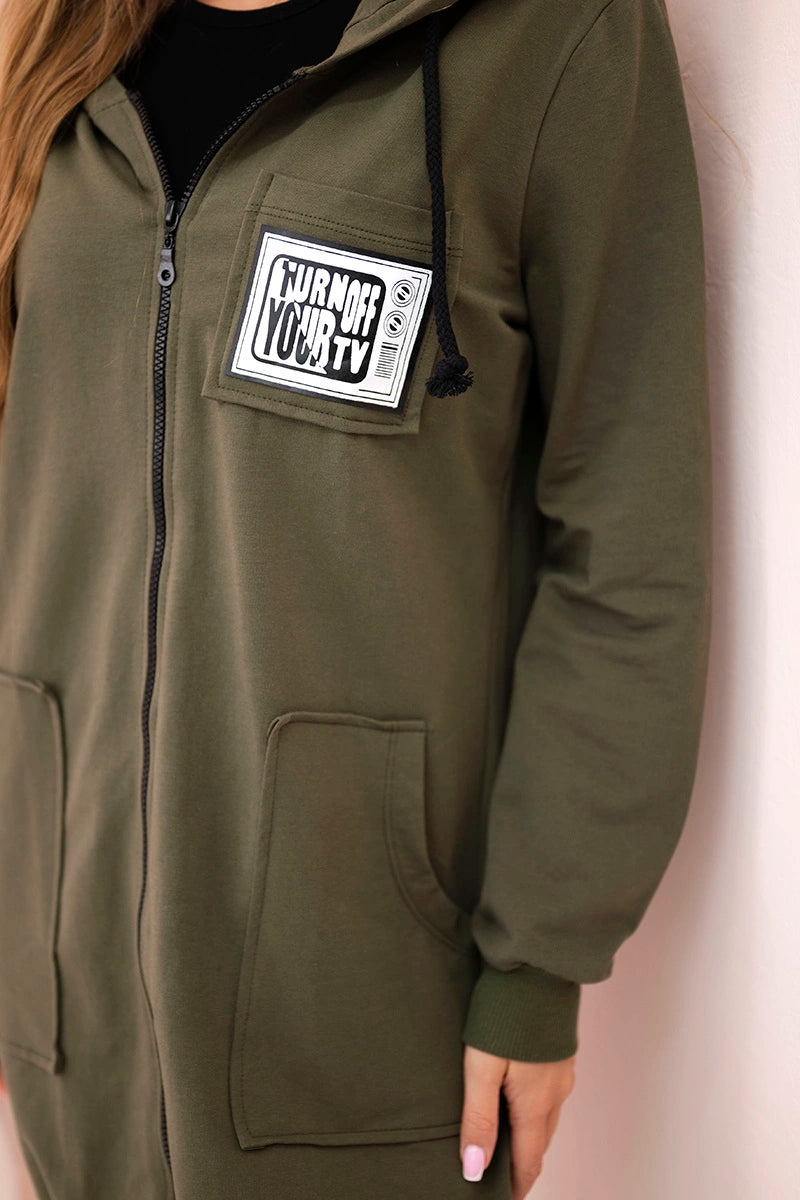 Dámska dlhšia mikina s kapucňou a zipsom khaki univerzálne