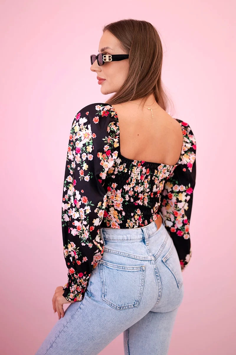 Dámska kvetinová španielska blúzka, dlhý rukáv čierny univerzálne