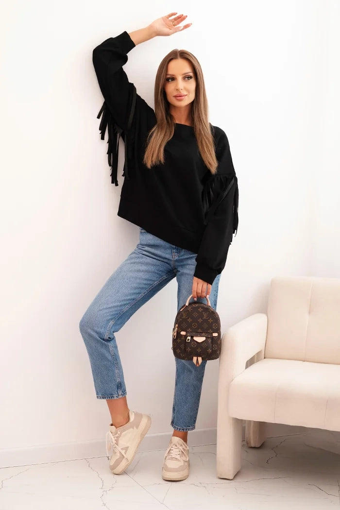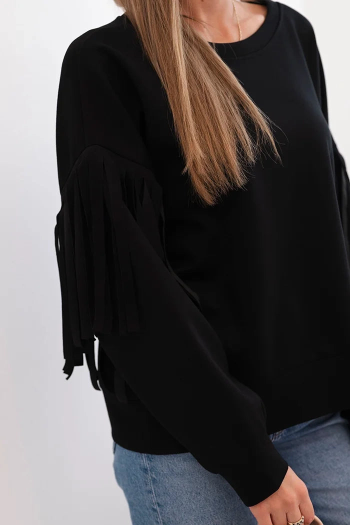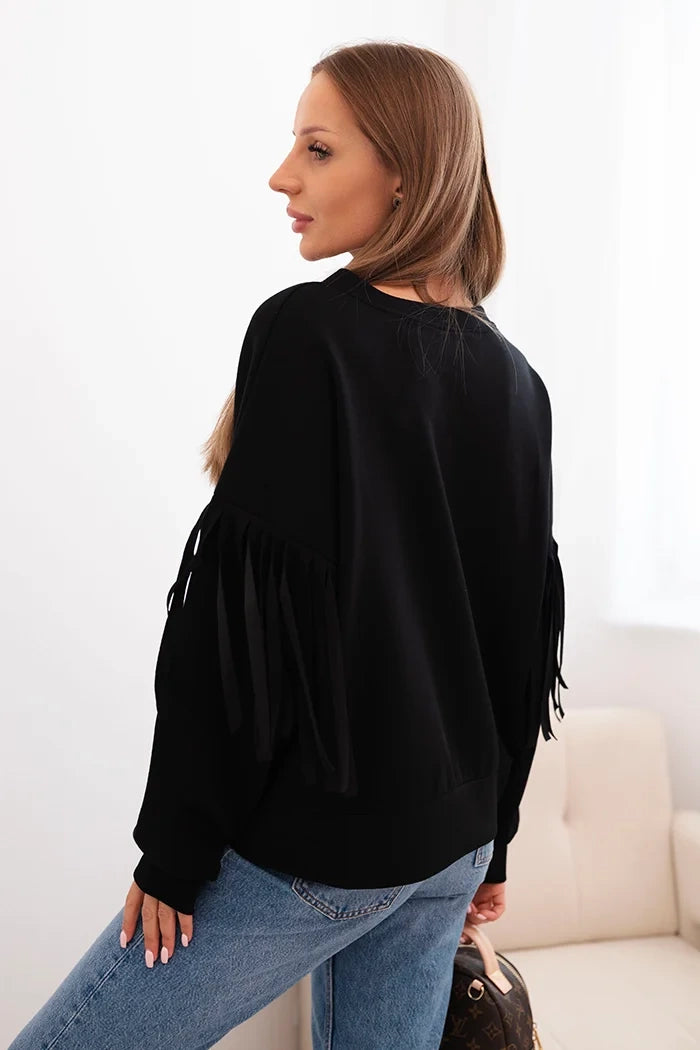 Dámska mikina maslová s ozdobnými rukávmi čierna univerzálne