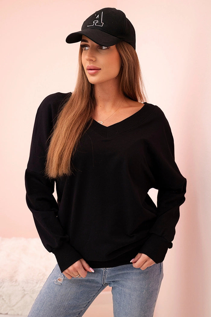 Dámska mikina s dlhým rukávom a výstrihom do V čierna univerzálne