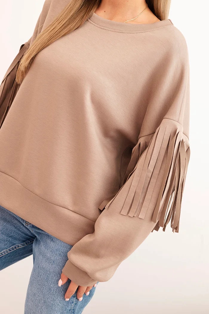 Dámska mikina s ozdobnými rukávmi maslová fango univerzálne