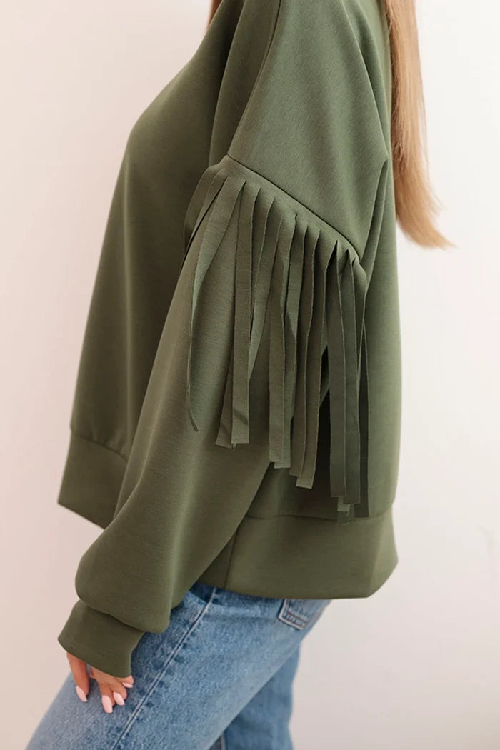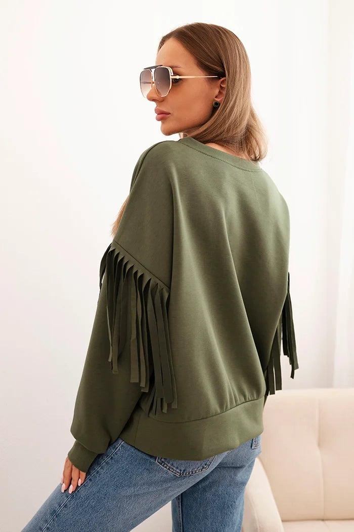 Dámska mikina s ozdobnými rukávmi maslová khaki univerzálne