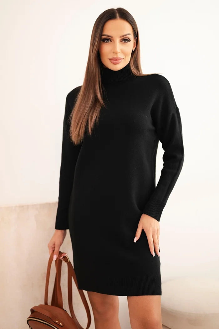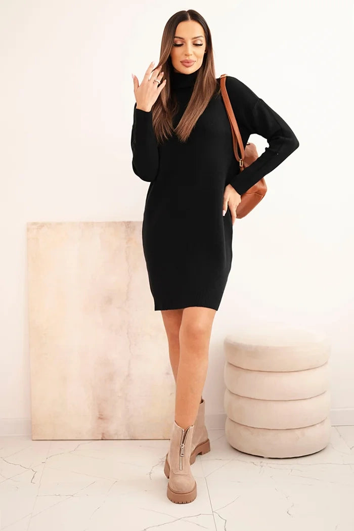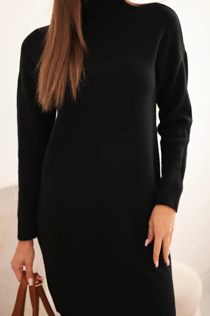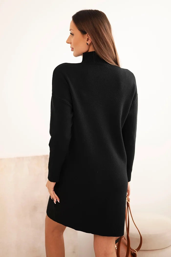 Dámska sveterová sukňa s golierom a vreckom čierna univerzálne