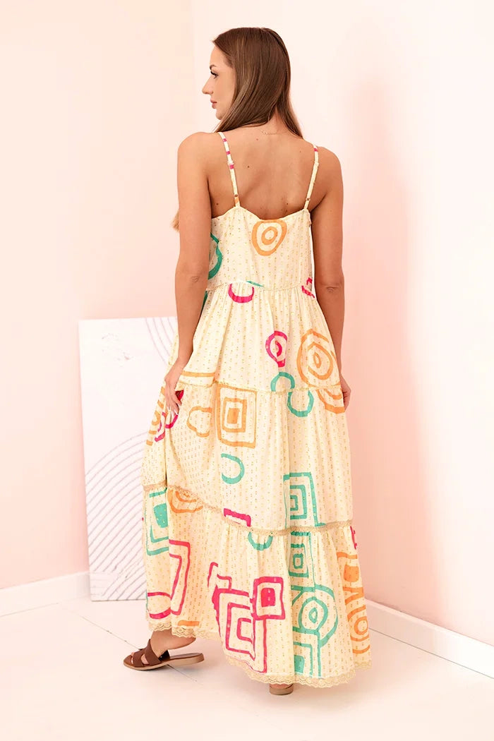 Dámske bavlnené šaty s farebným vzorom béžový L/XL