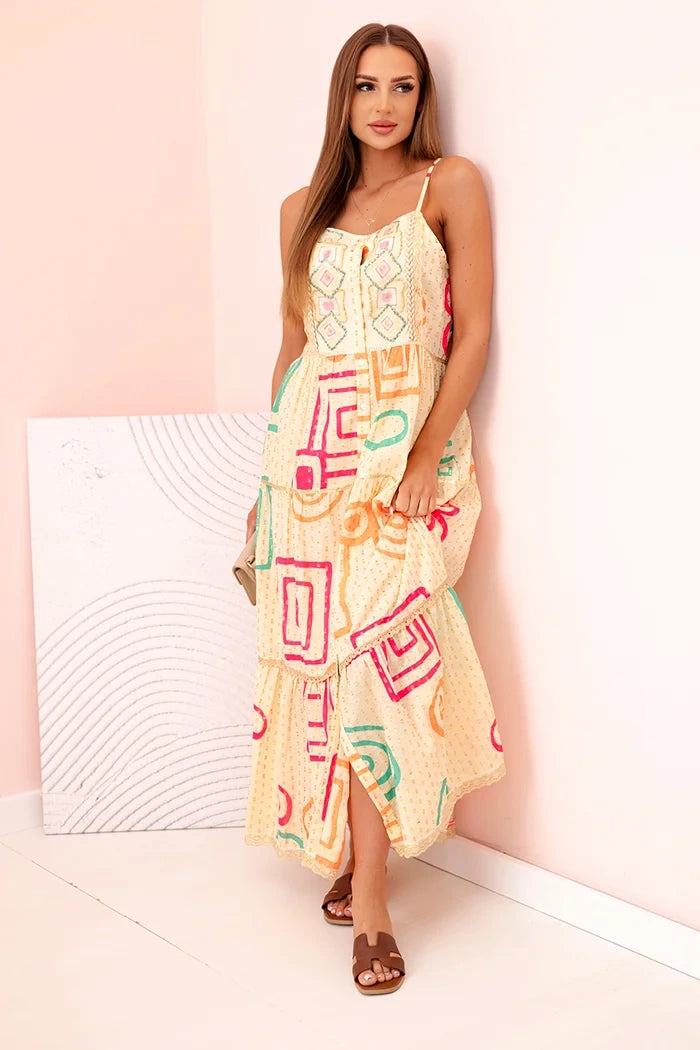 Dámske bavlnené šaty s farebným vzorom béžový M/L