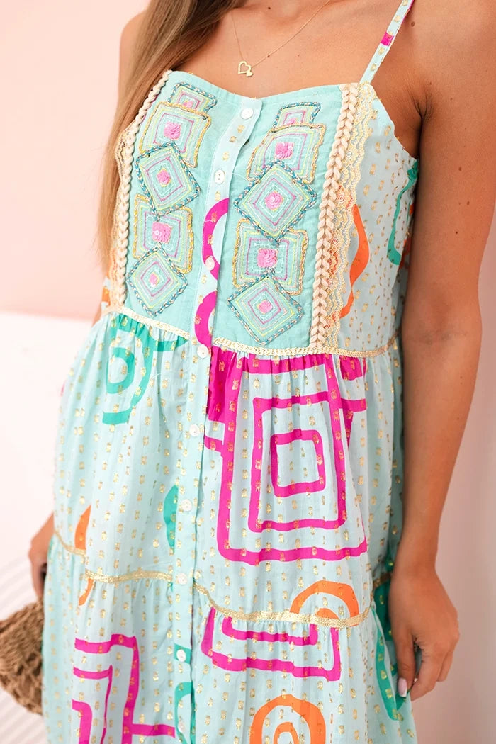 Dámske bavlnené šaty s farebným vzorom modrý L/XL