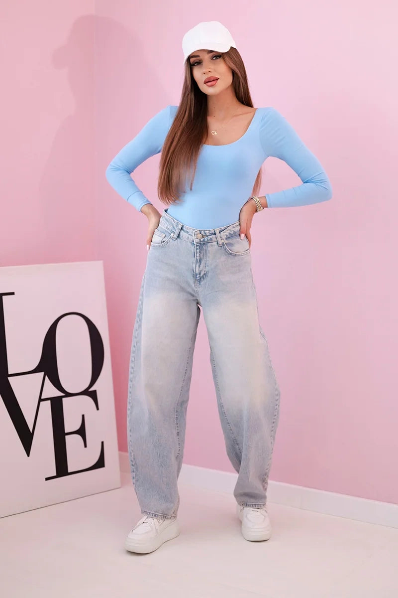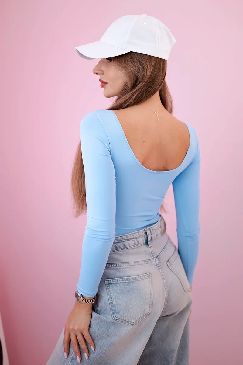 Dámske body blúzka s dlhým rukávom a hlbokým výstrihom modrý univerzálne