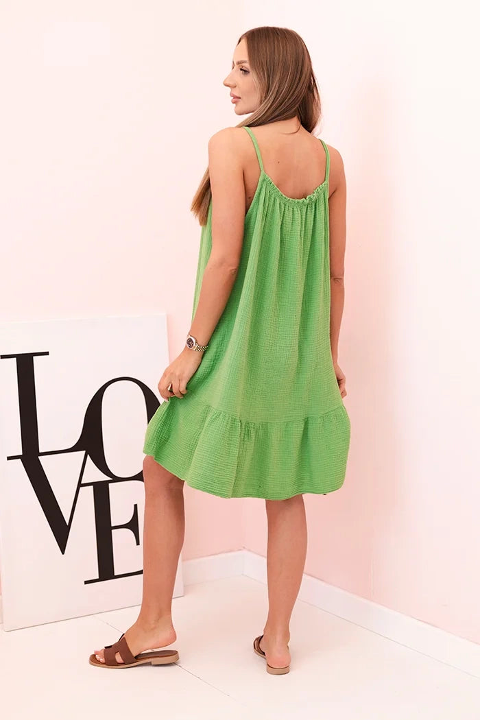 Dámske mušelínové šaty s ramienkami a volánom oliva univerzálne