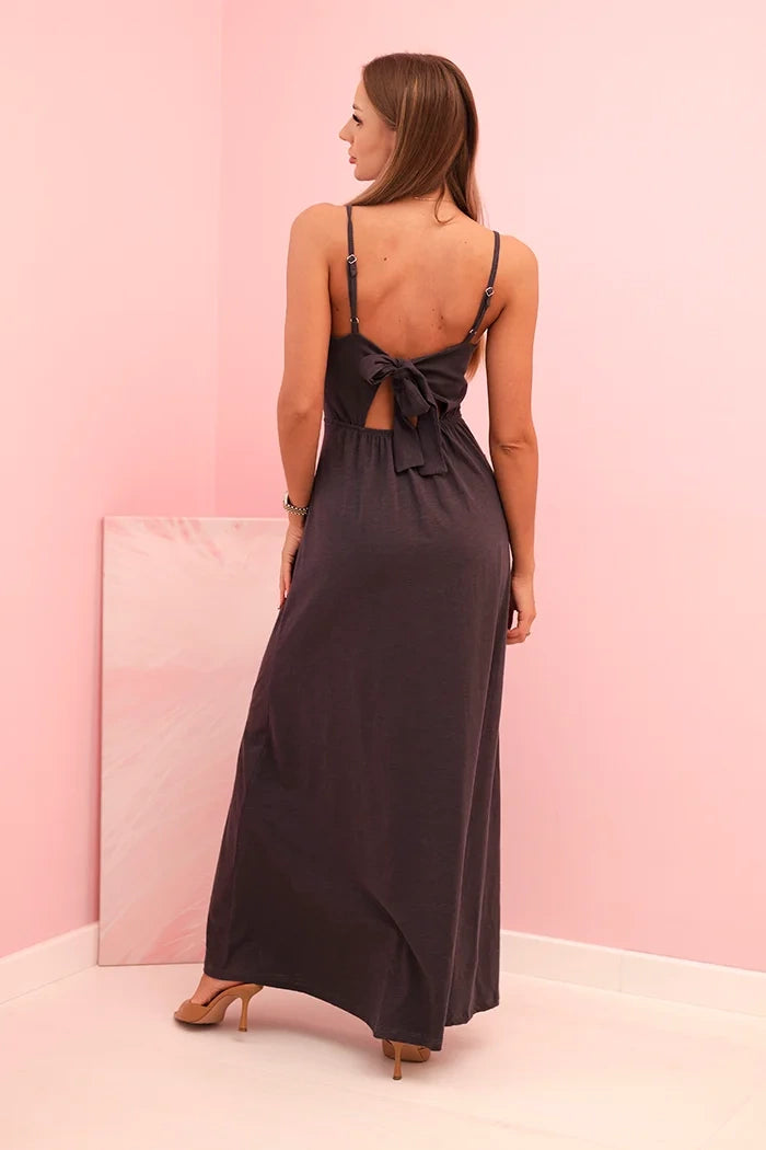 Dámske šaty na ramienka s rozšíreným spodkom grafitová univerzálne