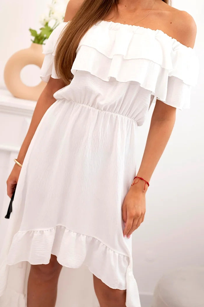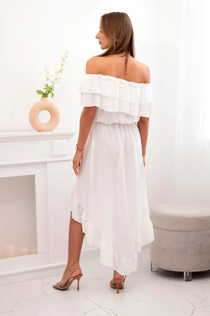 Dámske šaty s odhalenými ramenami a dlhším chrbtom ecru univerzálne