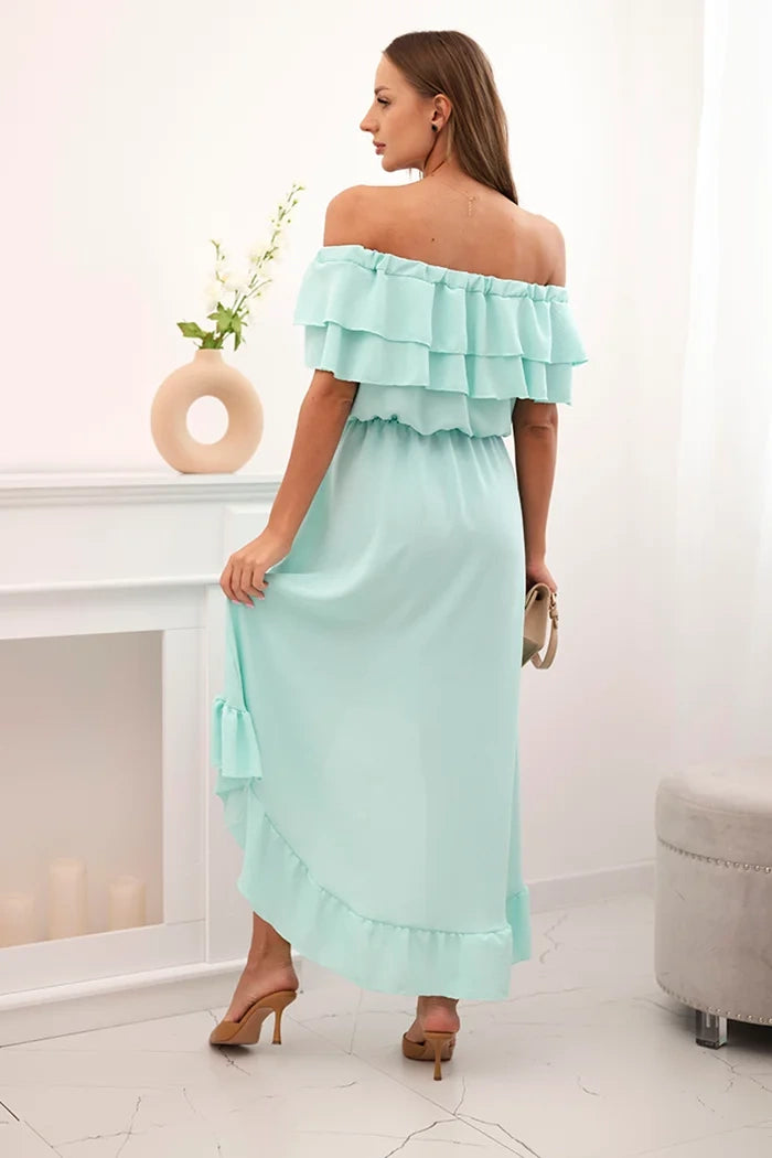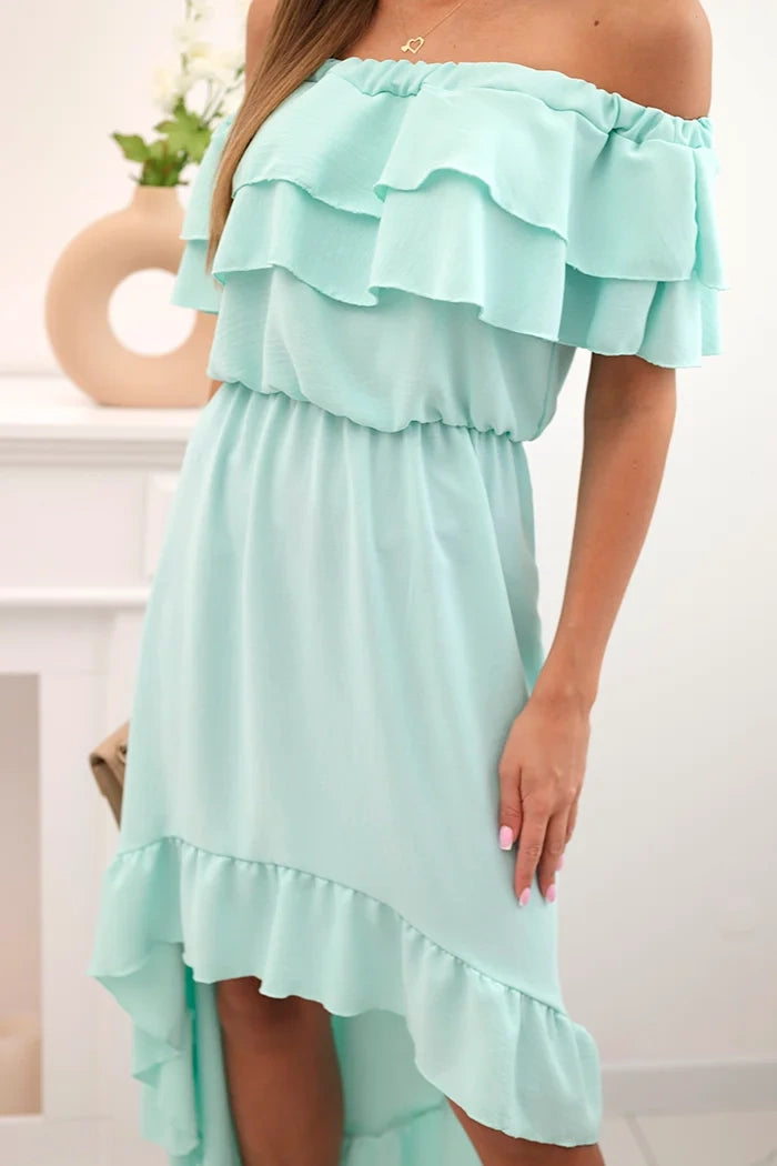 Dámske šaty s odhalenými ramenami a dlhším chrbtom mäta univerzálne