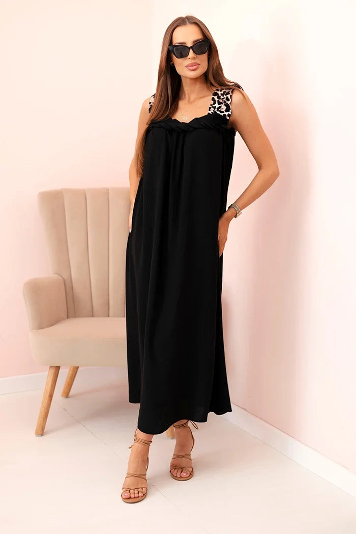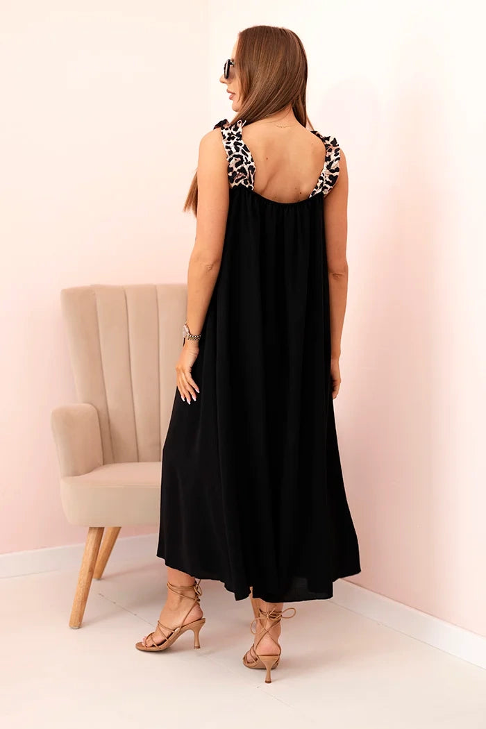 Dámske šaty s ramienkami s leopardím vzorom čierny univerzálne