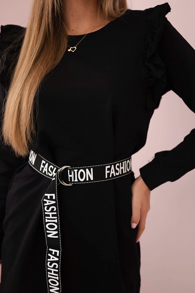 Dámske šaty s volánmi a opaskom čierny univerzálne