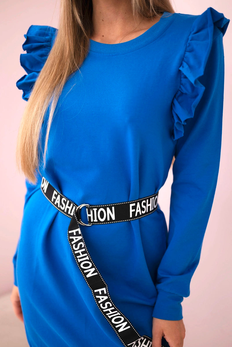 Dámske šaty s volánmi a opaskom nevädza modrá univerzálne