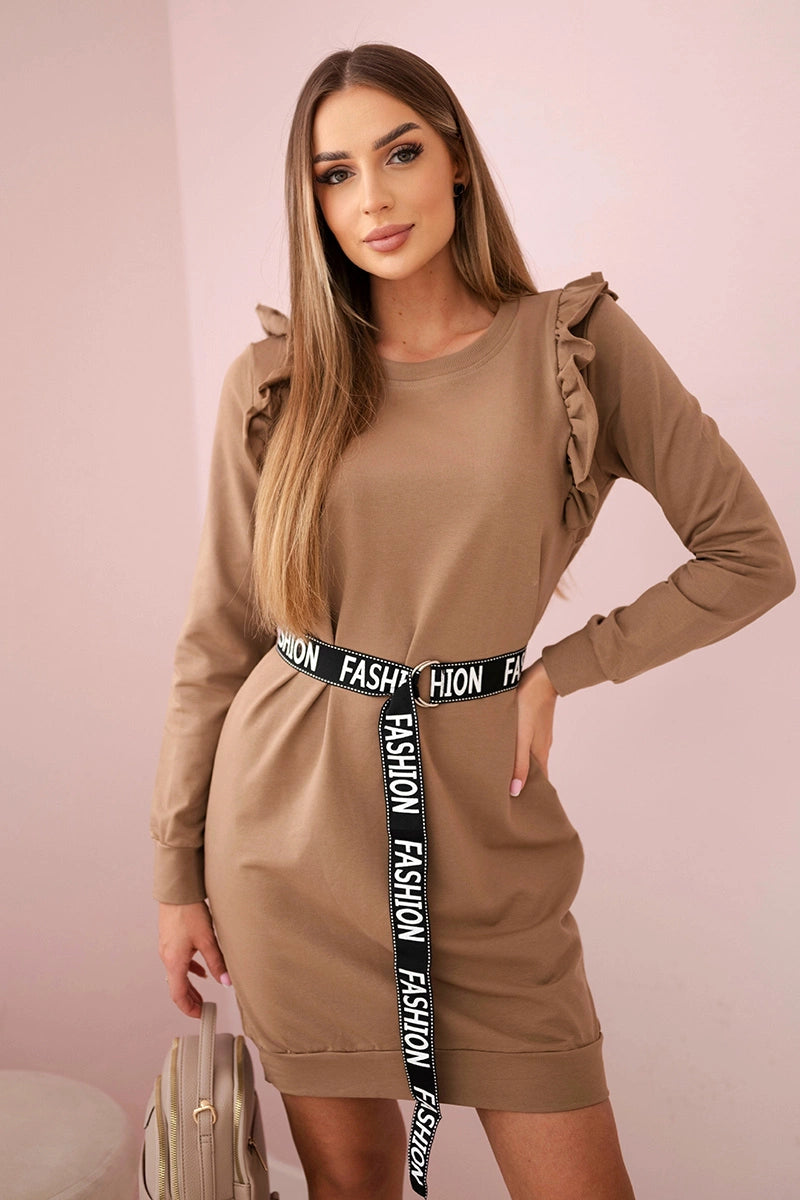 Dámske šaty s volánmi a opaskom ťava univerzálne