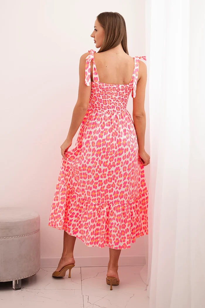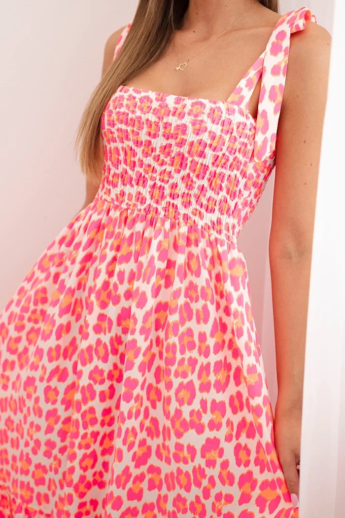 Dámske viskózové šaty na ramienka s riasením neónovo ružový univerzálne