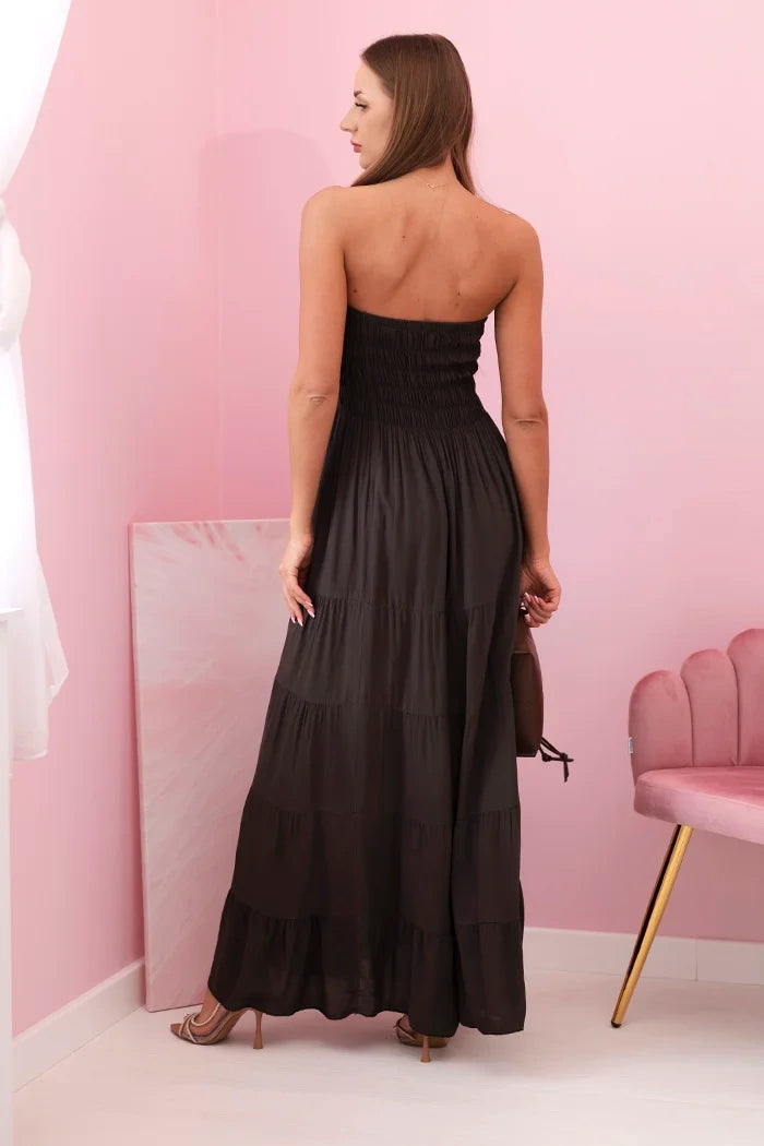 Dámske viskózové šaty s elastickým vrchom hnedý univerzálne