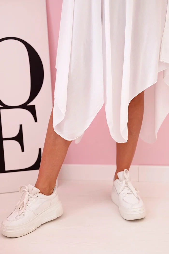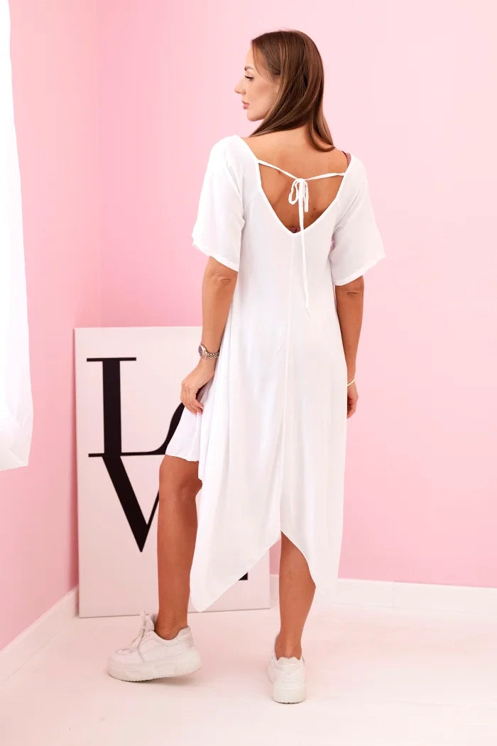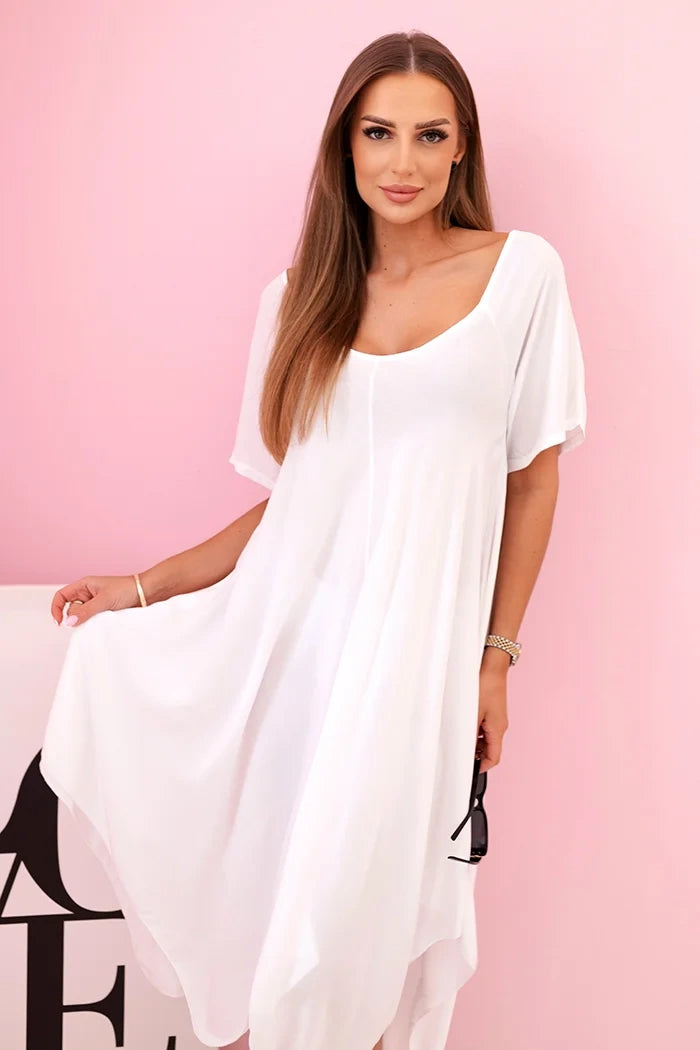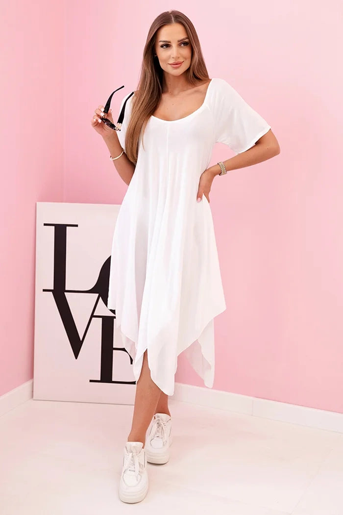 Dámske viskózové šaty s krátkym rukávom a rozšíreným lemom biely univerzálne