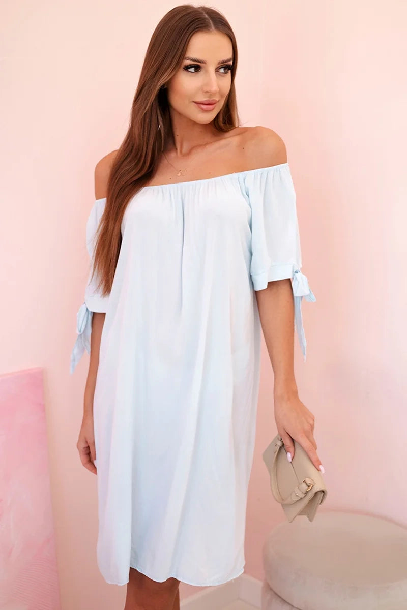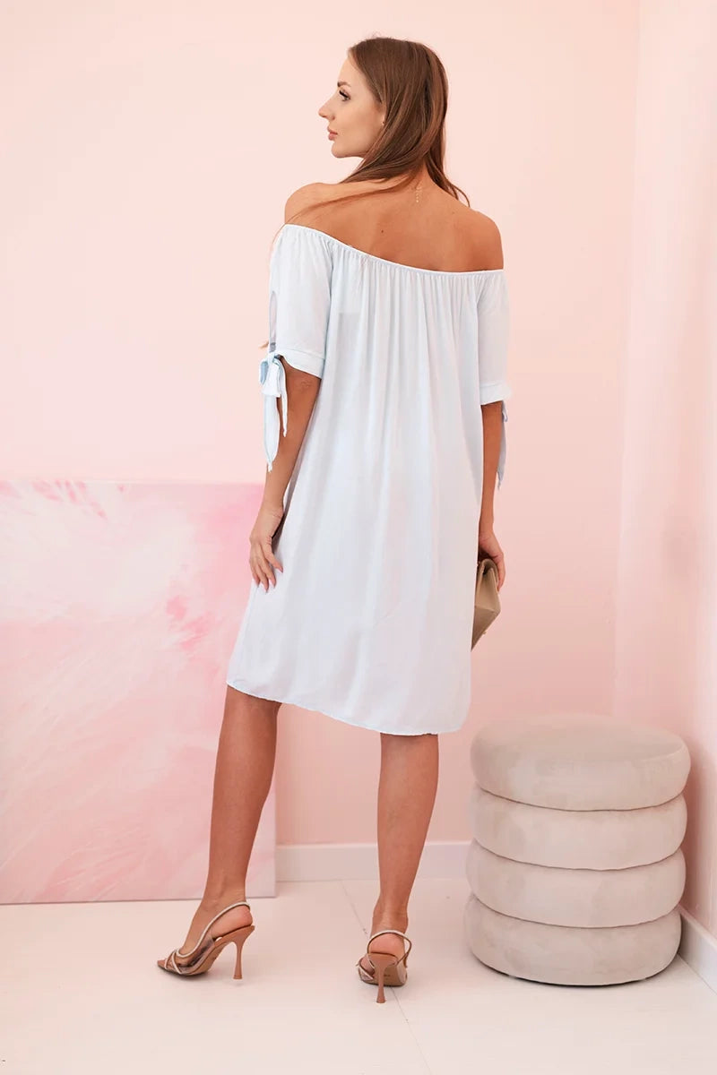 Dámske viskózové šaty s viazaním na rukávoch modré univerzálne