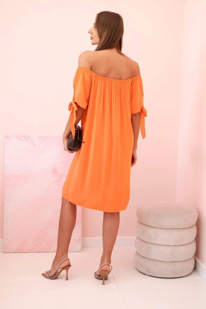 Dámske viskózové šaty s viazaním na rukávoch oranžové univerzálne