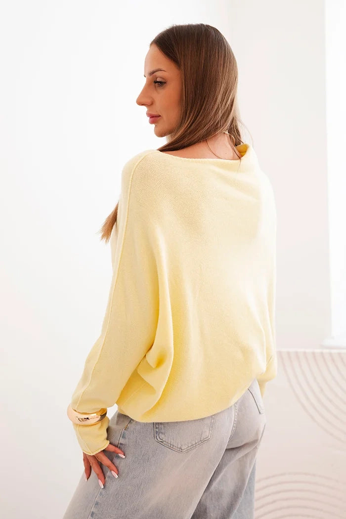 Dámsky asymetrický viskózový sveter netopier žltý univerzálne