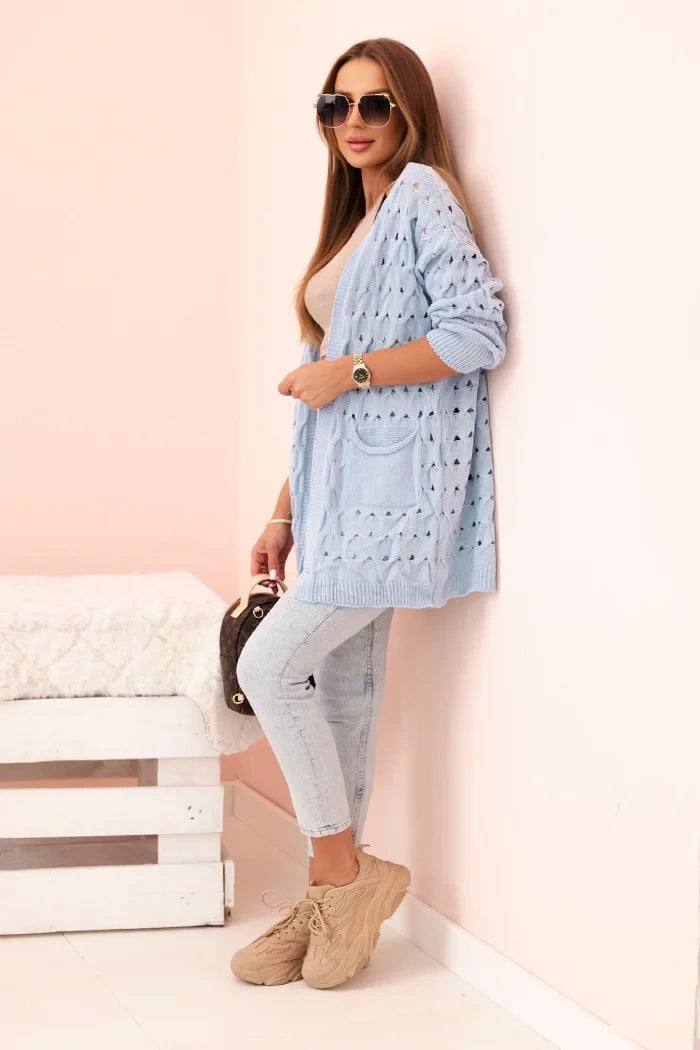 Dámsky azerovaný kardigán s vreckami modrý univerzálne