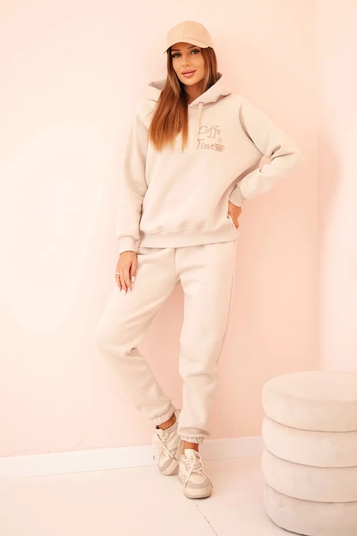 Dámský bavlněný zateplený komplet Coffe Time béžový