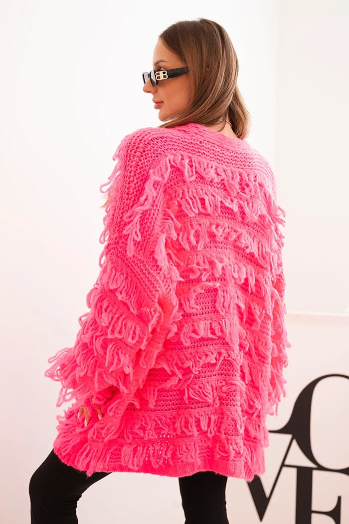 Dámsky kardigán s strapcami a voľným strihom neonová ružová univerzálne