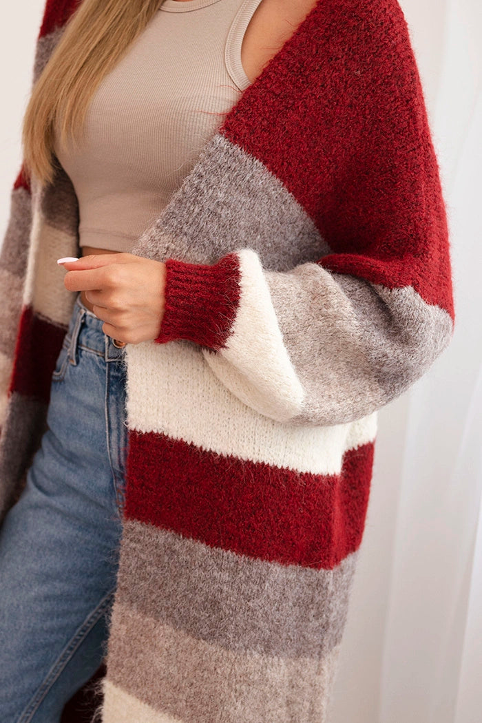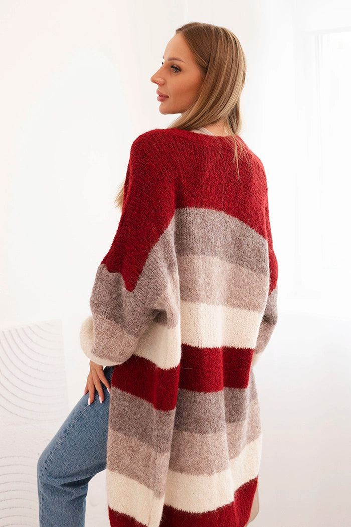 Dámsky kardigan s vlnou v farebných pruhoch bordový univerzálne