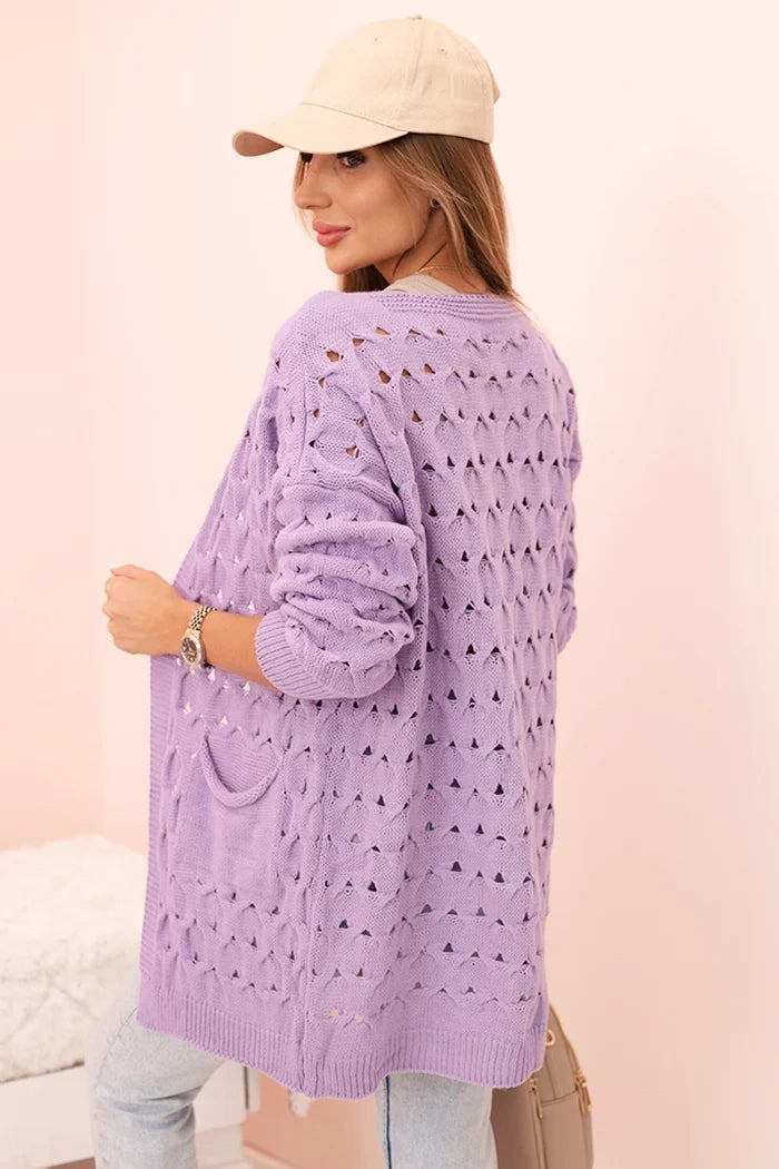 Dámsky kardigán s vreckami a vzorom fialový univerzálne