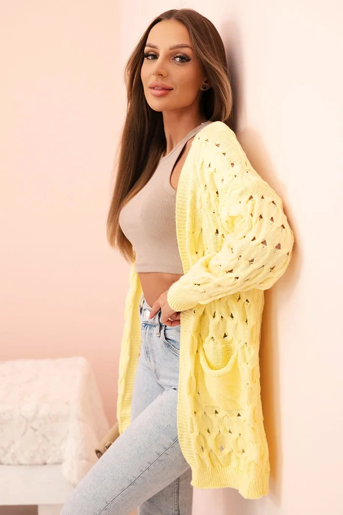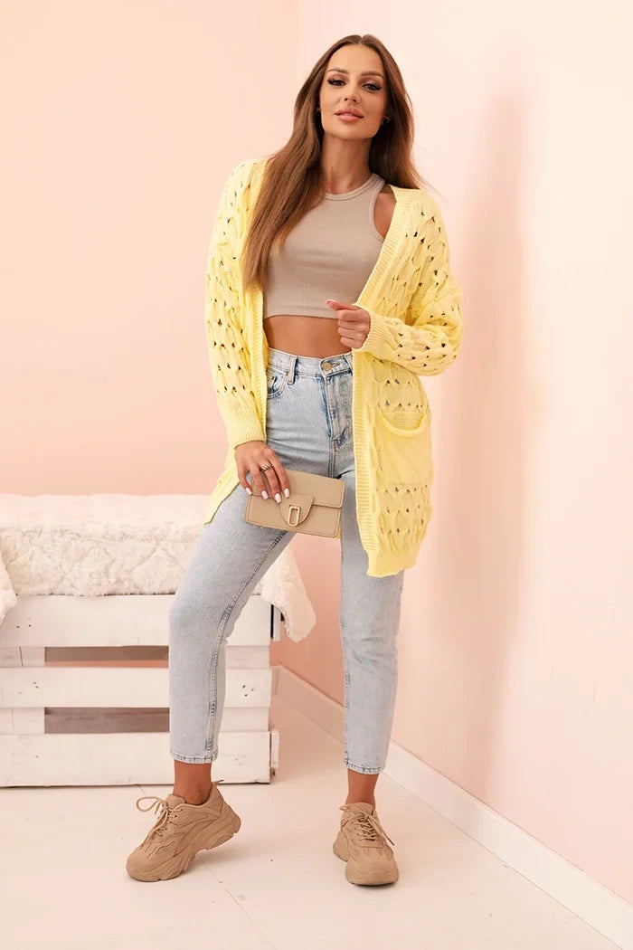 Dámsky kardigán s vreckami, ašurový žltý univerzálne
