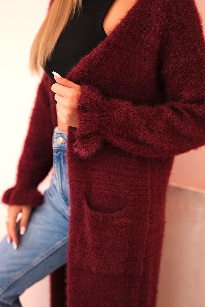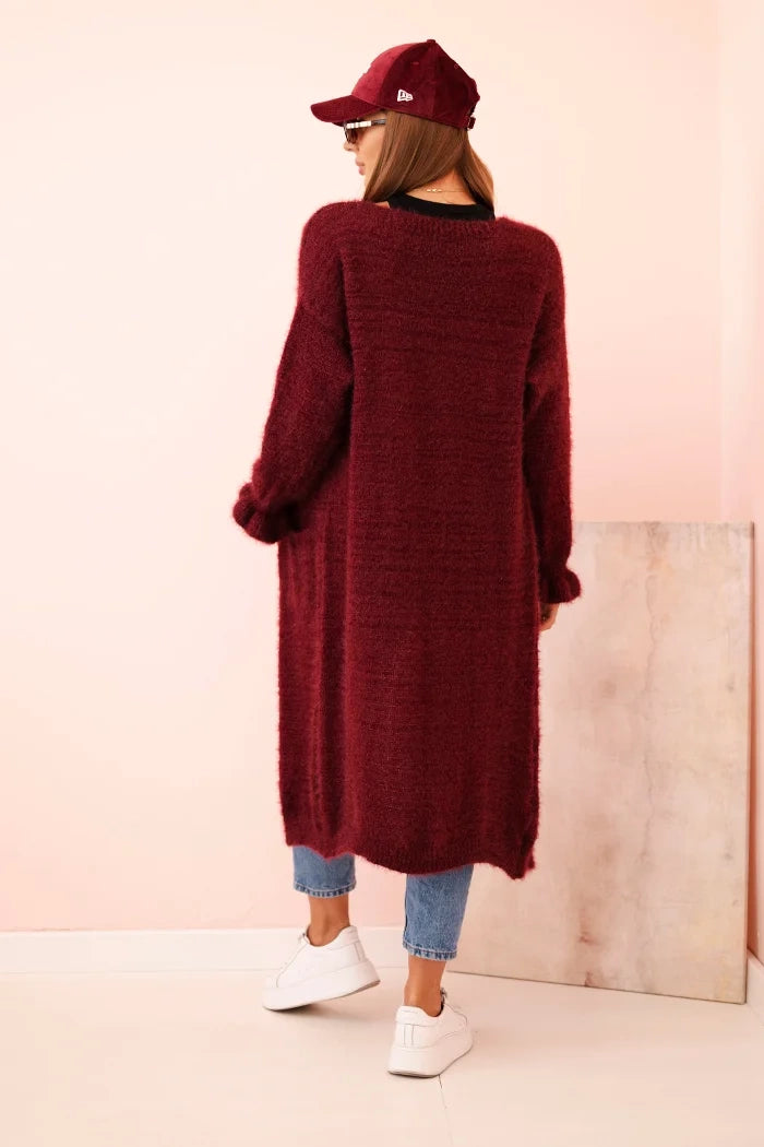 Dámsky kardigan z mohairu s dlhým strihom a vreckami slivkový univerzálne
