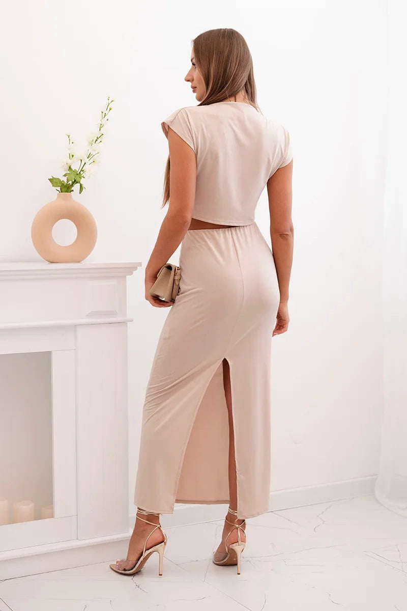 Dámsky komplet s blúzkou s ozdobnou prackou a priliehavou sukňou - béžový univerzálne