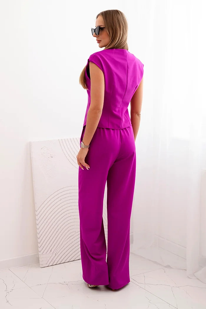 Dámsky komplet s vestou a širokými nohavicami tmavo fialová univerzálne