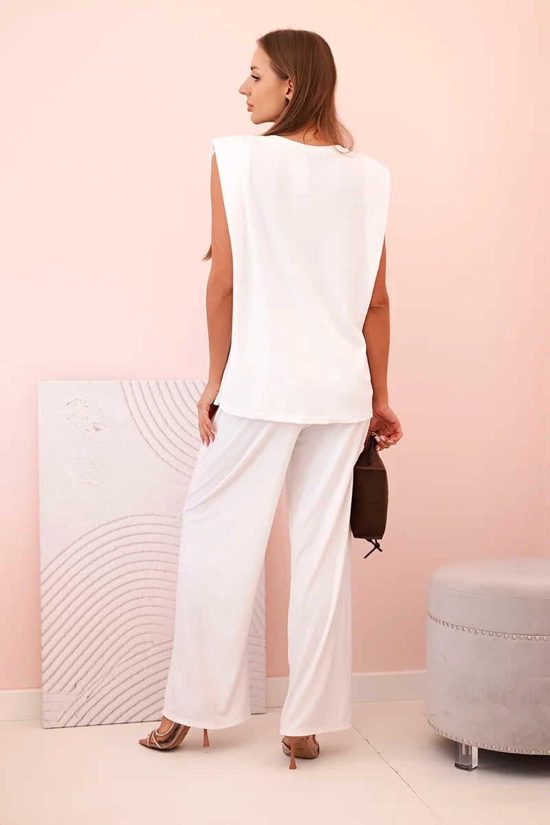 Dámsky komplet z viskózy bez rukávov a s rovnými nohavicami ecru univerzálne