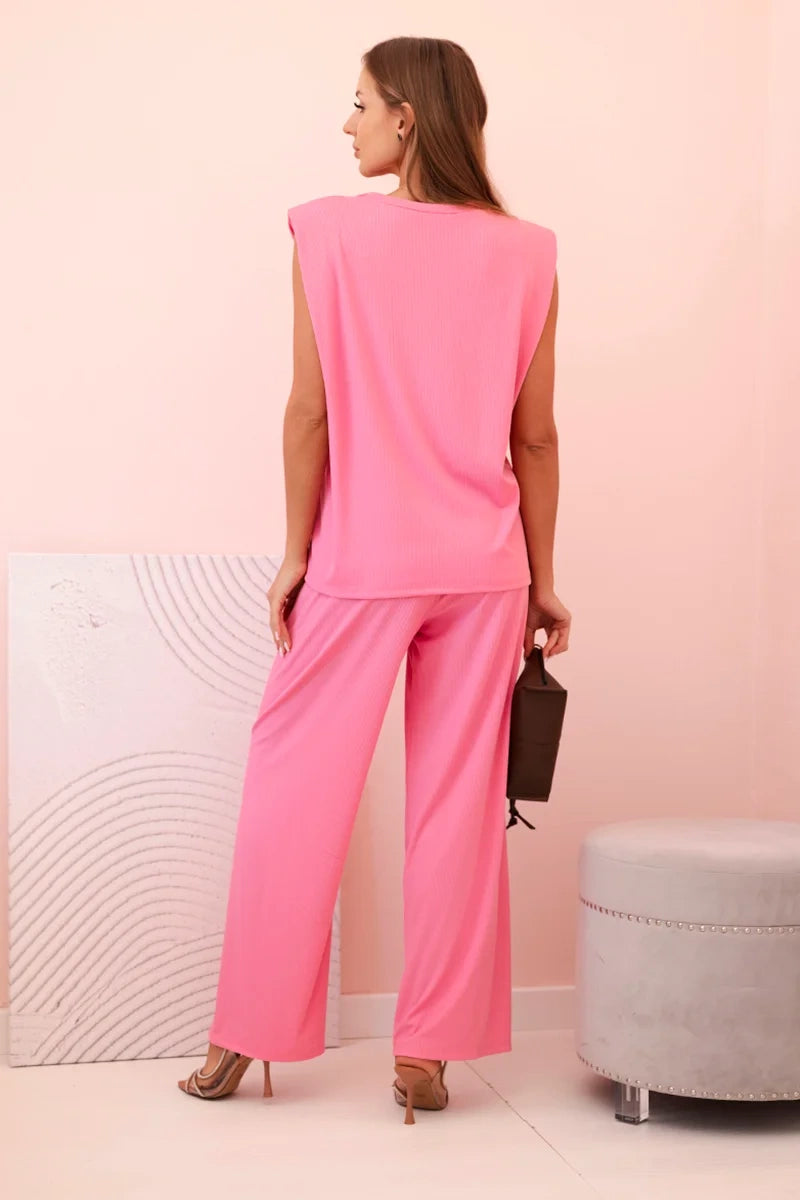 Dámsky komplet z viskózy bez rukávov a s rovnými nohavicami ružový univerzálne