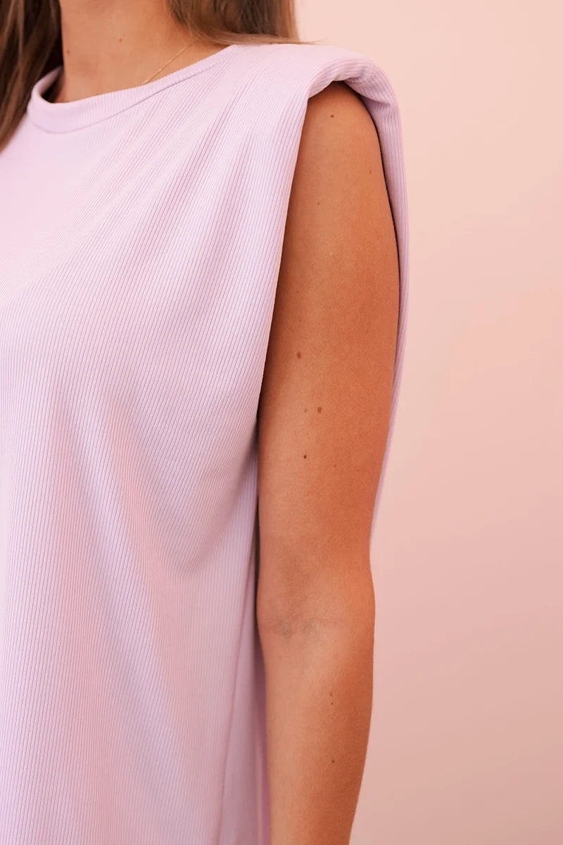 Dámsky komplet z viskózy bez rukávov a s rovnými nohavicami svetlofialový univerzálne