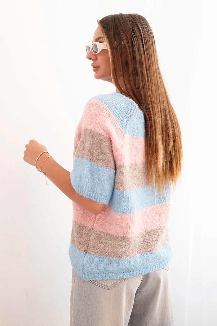 Dámsky pruhovaný sveter s krátkym rukávom z vlny fango + modrý univerzálne