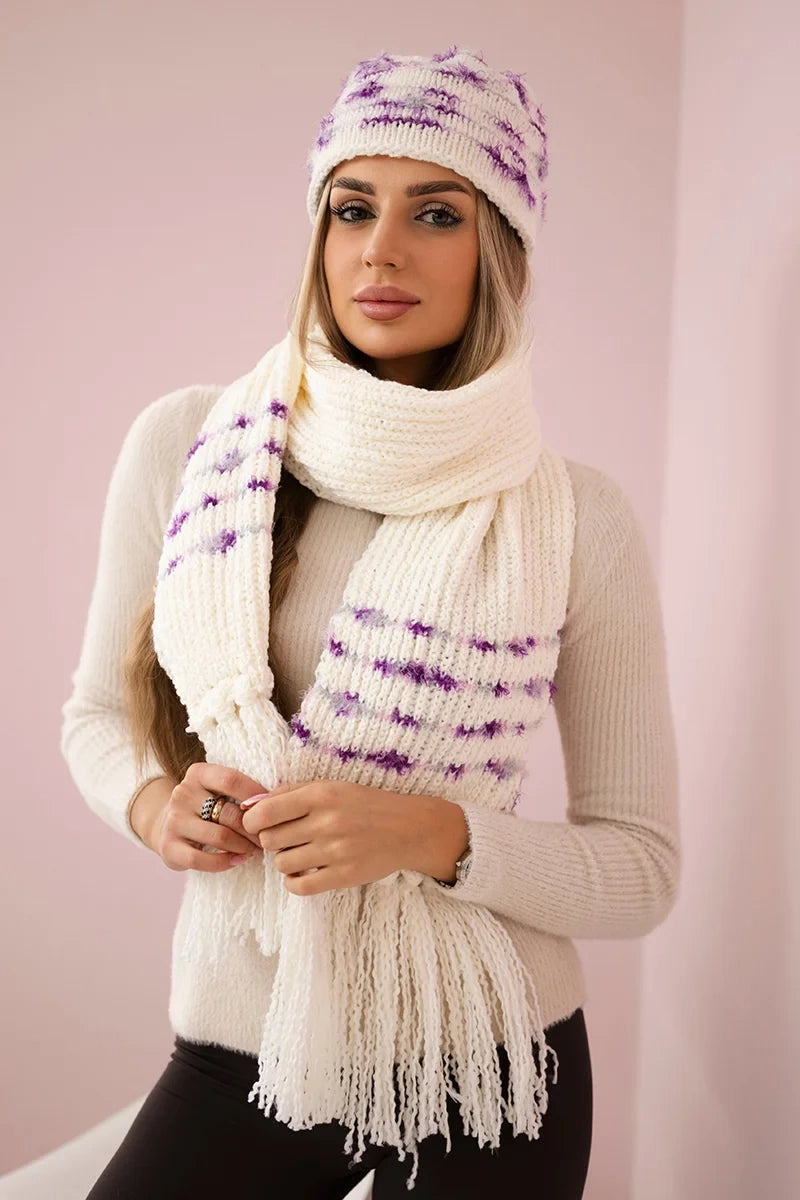 Dámsky set so šatkou Anika K304 ecru + fialová univerzálne