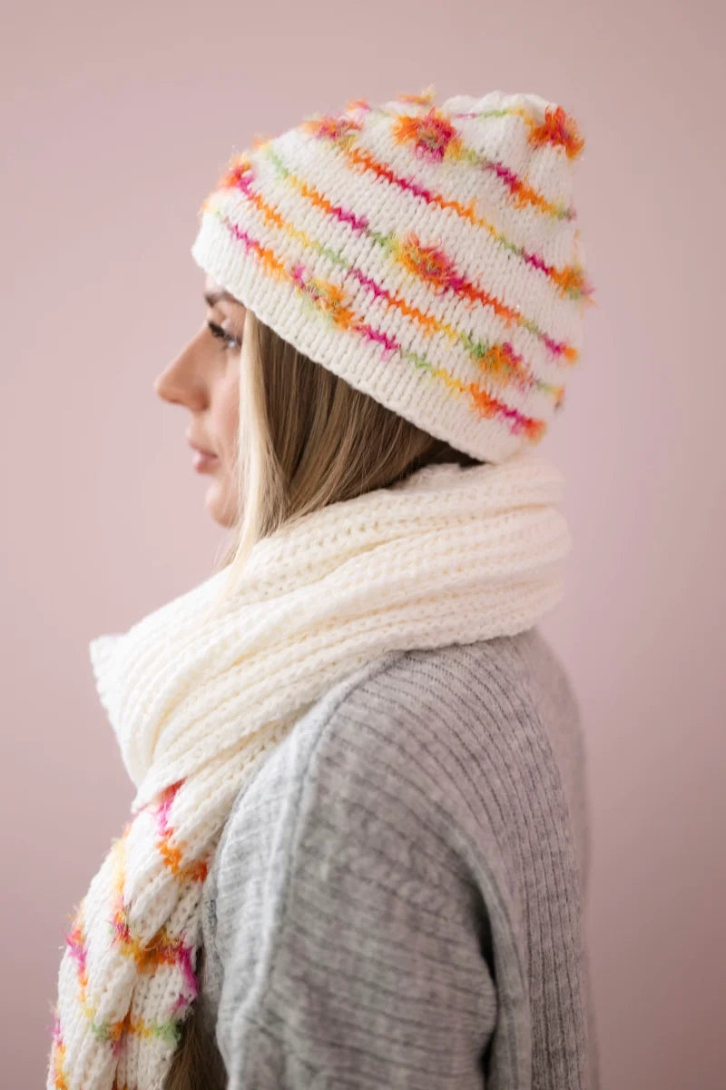 Dámsky set so šatkou Anika K304 ecru + pomaranč univerzálne