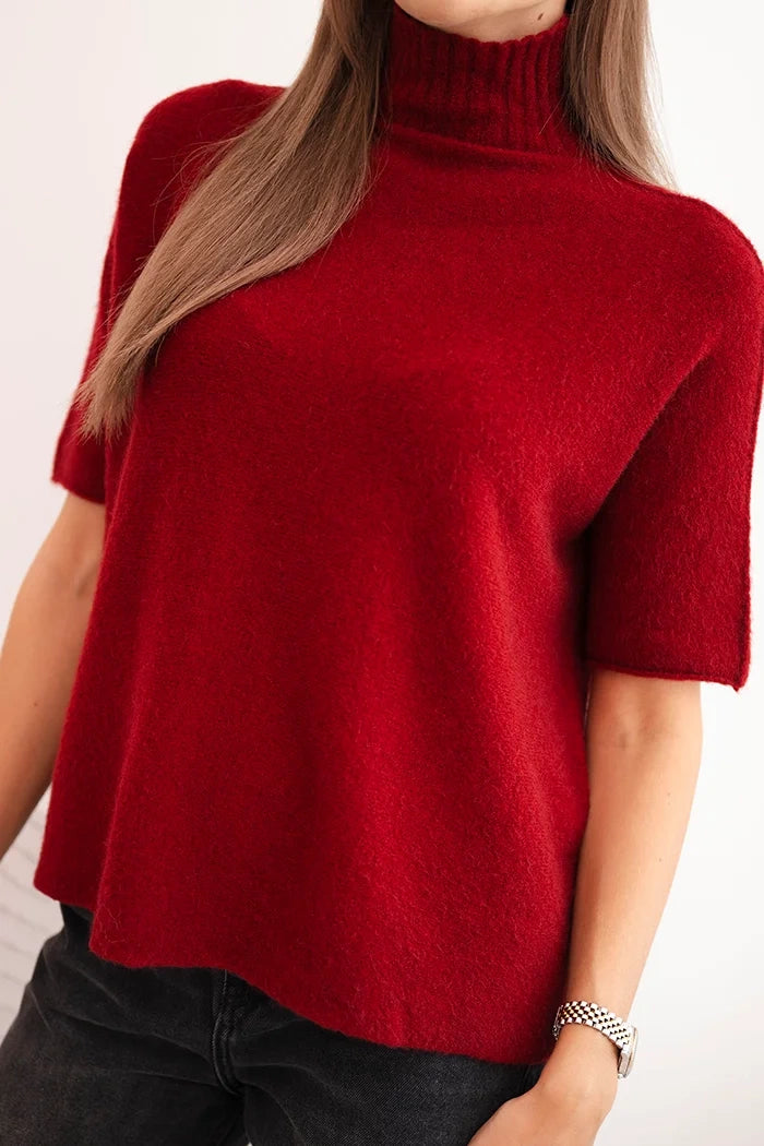 Dámsky sveter s krátkym rukávom vo voľnom strihu bordový univerzálne