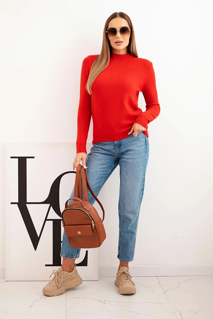 Dámsky sveter s polovičným golierom z mäkkej priadze červený univerzálne