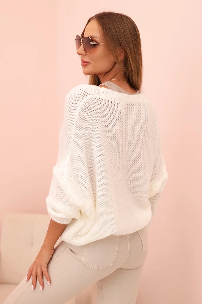 Dámsky sveter s V výstrihom a gombíkmi ecru univerzálne