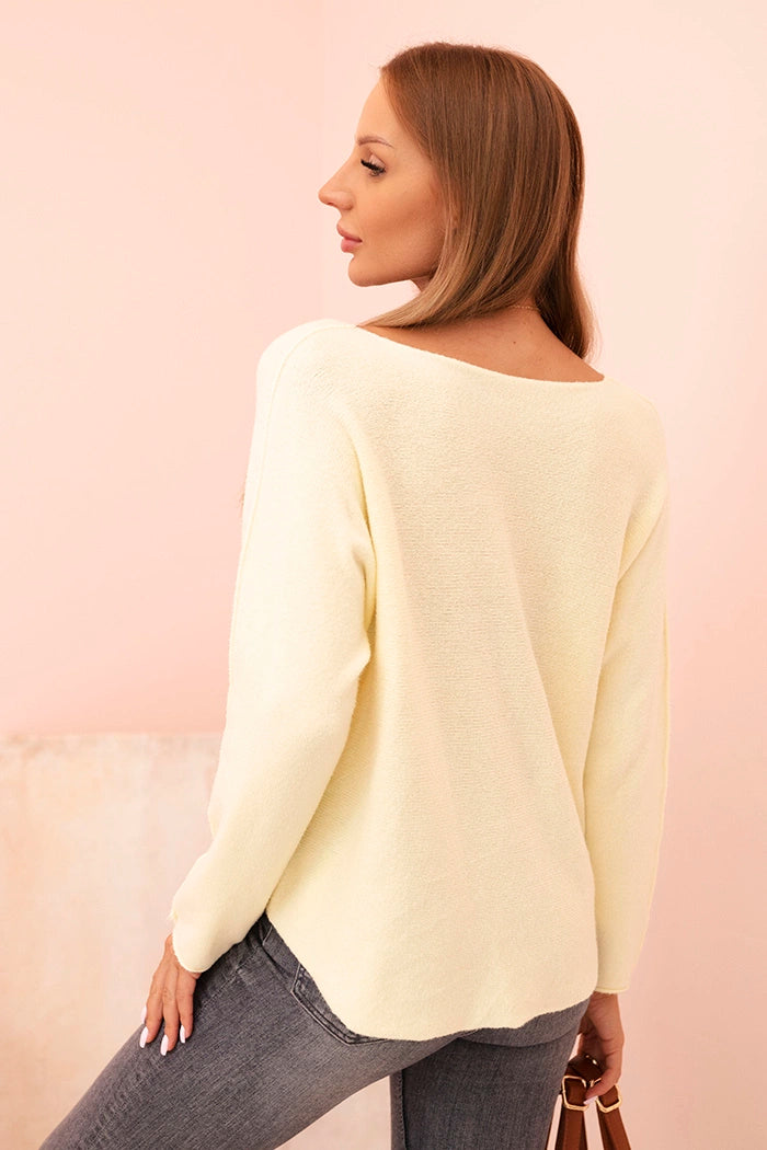 Dámsky sveter s viskózou a výstrihom do V citrónový univerzálne