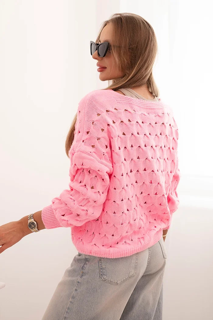 Dámsky sveter s výstrihom do V a zlatými gombíkmi svetloružový univerzálne