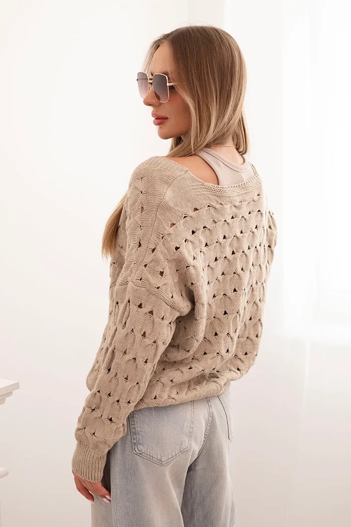 Dámsky sveter s výstrihom do V a zlatými gombíkmi tmavohnedý univerzálne