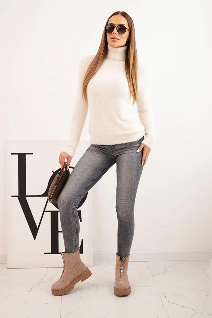 Dámsky sveter z alpaky s golierom béžový univerzálne