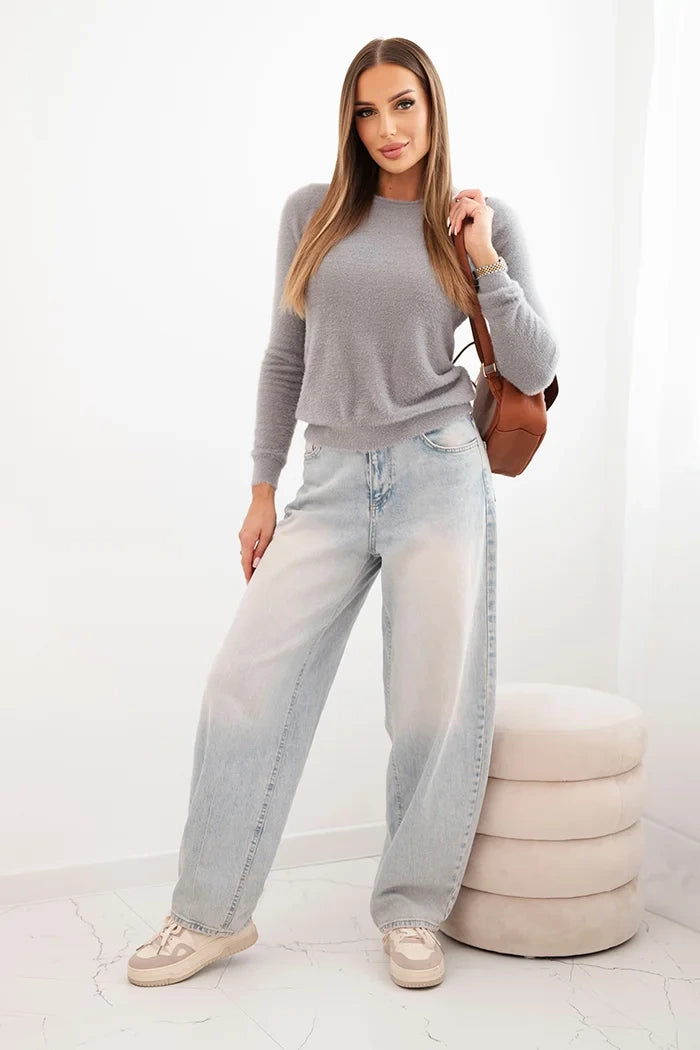 Dámsky sveter z alpaky s okrúhlym výstrihom šedý univerzálne